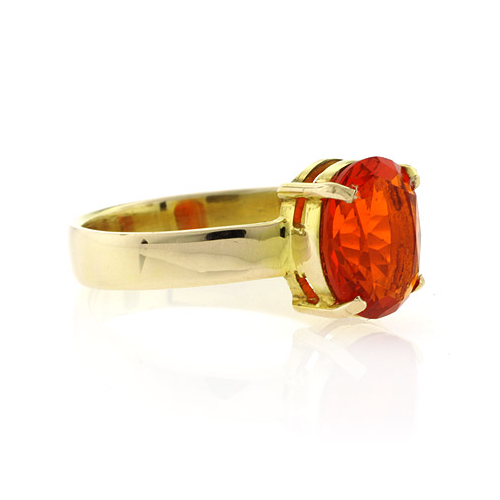 A simple ring can also be very capable of getting you all the looks. This beautiful jewel is made of a gorgeous mexican cherry fire opal of approx. 3 carat, carefully mounted on a 14K solid yellow gold ring. Very High Quality Genuine Mexican Cherry Fire Opal.