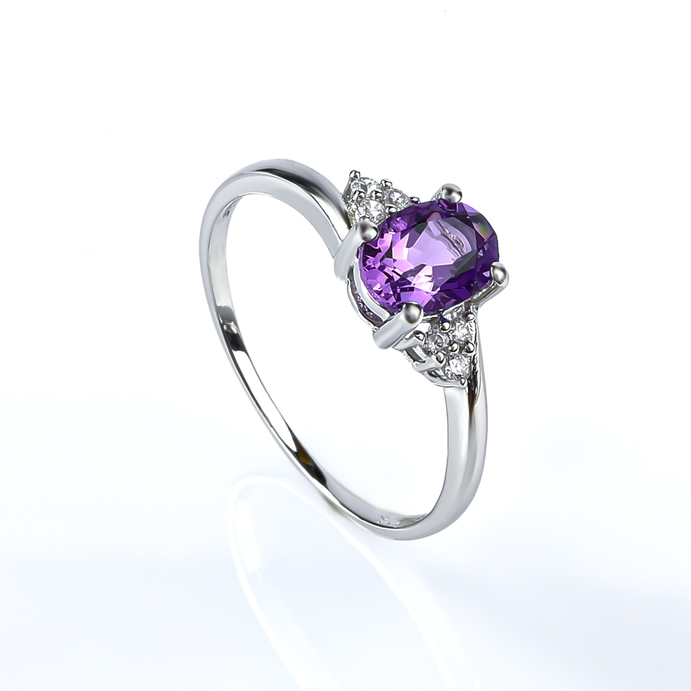 Amethyst Solitaire Ring. Elegant and delicious, an excellent choice for a chic woman. Here is a perfect example of why the stone on this ring is beautiful. To make this ring even more special we give you the 3 dazzling simulated diamonds on each side of the brightest jewel. This ring is also available as part of a kit with a matching pendant and earrings. Amethyst (approx = 1.5 carat) ( 7 mm x 5 mm) + Simulated Diamonds