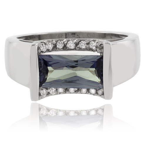 One of a kind Baguette Cut Alexandrite Silver .925 Ring. Alexandrite Silver Ring made with .925 sterling silver and a rhodium finish to give it a platinum look. An amazing piece that will capture looks with its color changing alexandrite and simulated diamonds for a sparkling finish. Alexandrite ( 10 mm x 5 mm ) + Simulated Diamonds