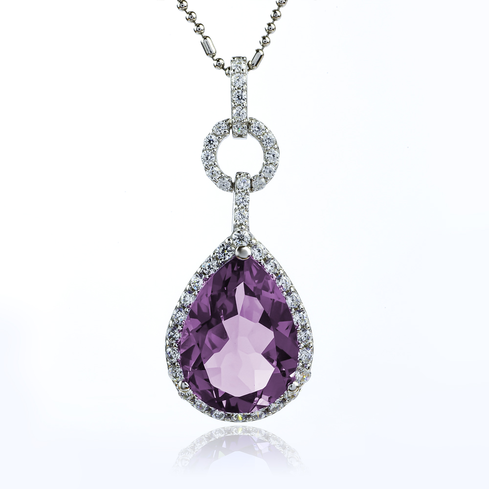 It is a beautiful Color Change Alexandrite Big Pear Cut Pendant, surprising for a Pendant that your partner will always love. With a pear-cut alexandrite stone in the center of your Pendant. Surrounded by 42 dazzling simulated diamonds. It changes color when light shines through. ( 32 mm x 13 mm )