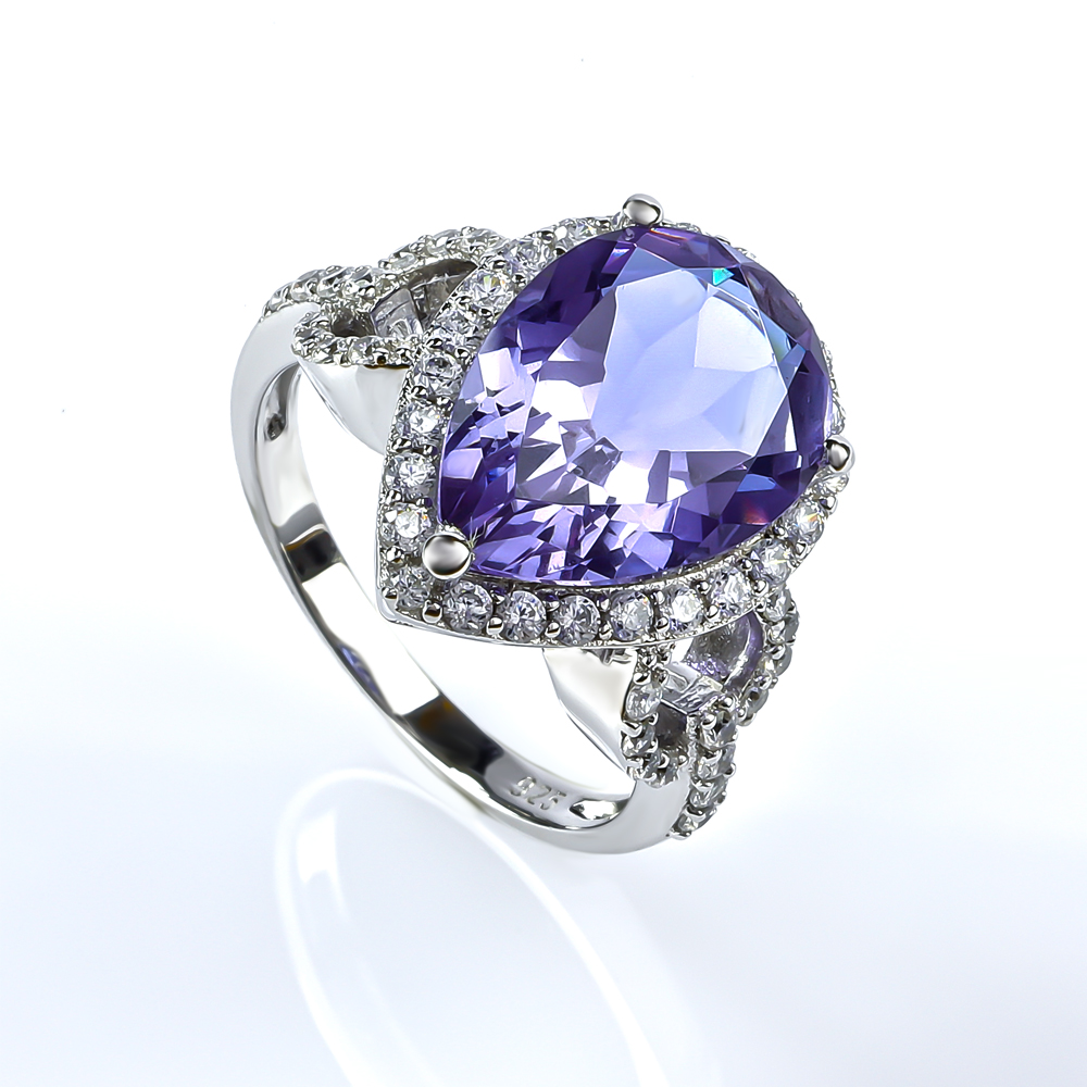 It is a beautiful Color Change Alexandrite Big Pear Cut Ring, surprising for an engagement ring that your partner will always love. With a pear-cut alexandrite stone in the center of your ring. Surrounded by 12 dazzling simulated diamonds. It changes color when light shines through. Alexandrite ( 15 mm x 10 mm )