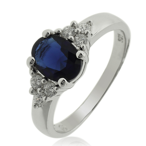 Elegant Silver Ring With Oval Cut Sapphire Gemstones and Simulated Diamonds. Add intense glimmer to your outfit with this Fabulously trendy Sapphire (Approx. 8mm x 6mm) ring with beautiful white Zirconia. The perfect ring for you, is so stylish! .925 Sterling silver ring.