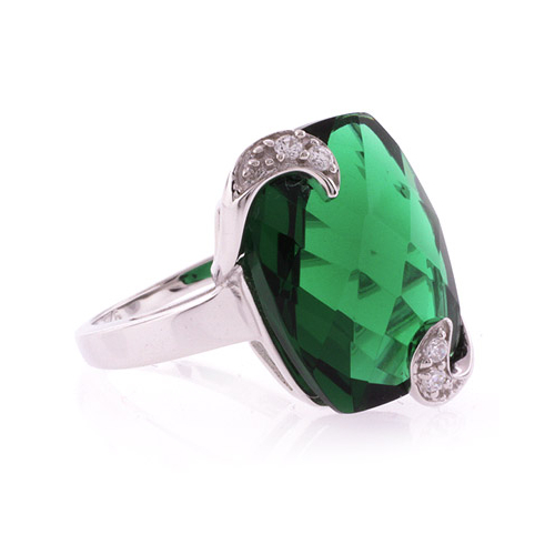Simple, elegant and beautiful, this is an excellent ring for any desired occasion or season. The ring features a deep green color checkboard cut gemstone of your choice on a simple, solid silver band and very brilliant simulated diamonds as complement. Emerald (approx = 7 carat) ( 16 mm x 12 mm ) + Simulated Diamonds