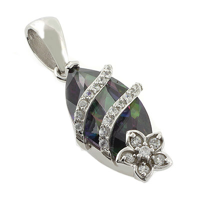 Mystic Topaz Marquise Cut Stone Flower Pendant, Mystic Topaz pendants are one of our main product line at Silver Best Buy Co. jewelry. We offer many styles of Mystic Topaz silver pendants, as well as Mystic Topaz rings and Mystic Topaz earrings. 2.9 cms x 1.2 cms