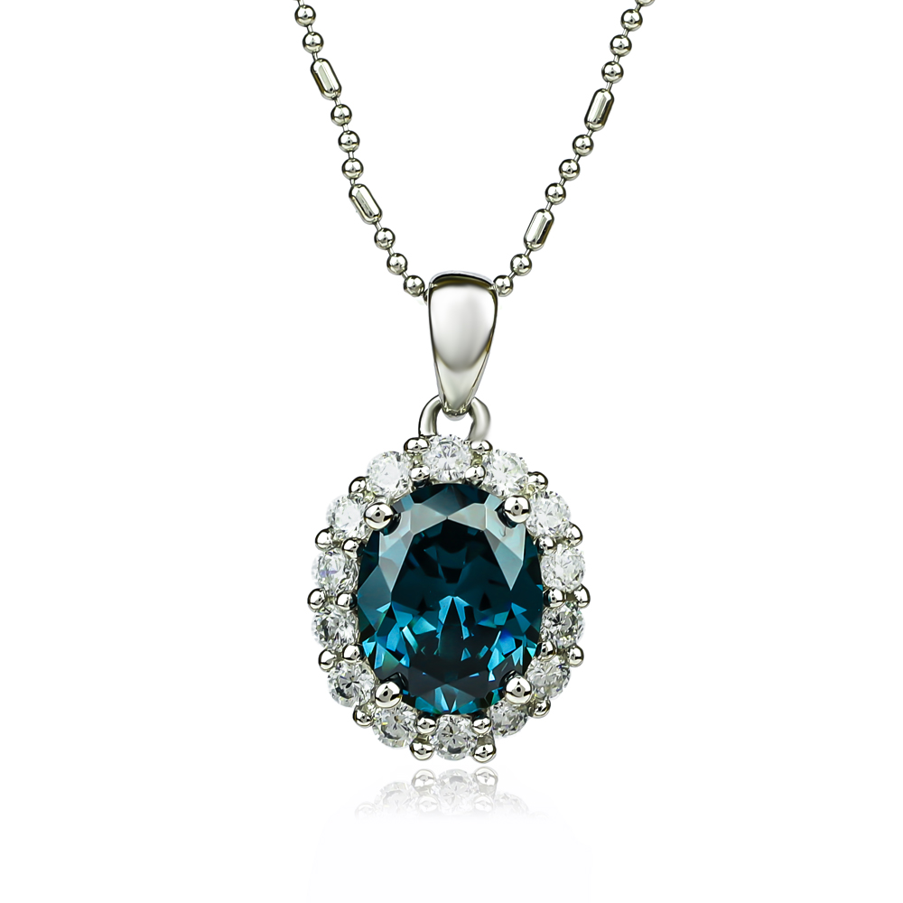 Oval Cut Alexandrite Silver Pendant. Add intense glimmer to your outfit with this gorgeous oval-Cut Pendant, with Alexandrite gemstone (In approx. 9mm x 7mm) and simulated Diamonds. No chain included.