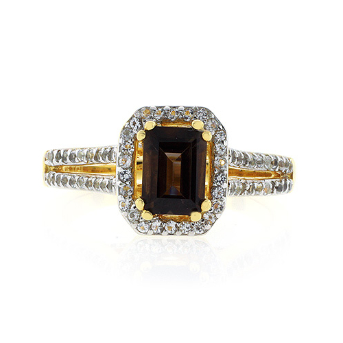 Smoked Topaz Gemstone Sterling Silver Ring from Silver Best Buy. Very high quality genuine smoked topaz yellow gold plated silver rings. 11 mm wide Genuine Smoked Topaz + Genuine White