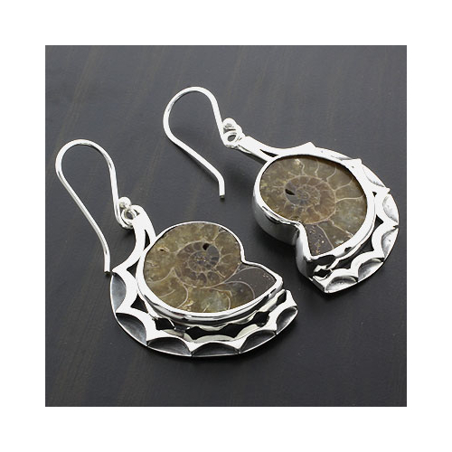 Genuine Ammonite Earrings from silverbestbuy.com amazing million's of years old ammonite sea shell fossil on a silver earrings. 4 cm long, before the hook. ( 1.6" )