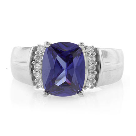 Unisex Tanzanite Silver Ring with a center stone, 10 sparkling simulated diamonds and on a sterling silver setting. The ring is also available with different gemstones. Tanzanite (approx = 3.5 carat) ( 10 mm x 8 mm) + Simulated Diamonds